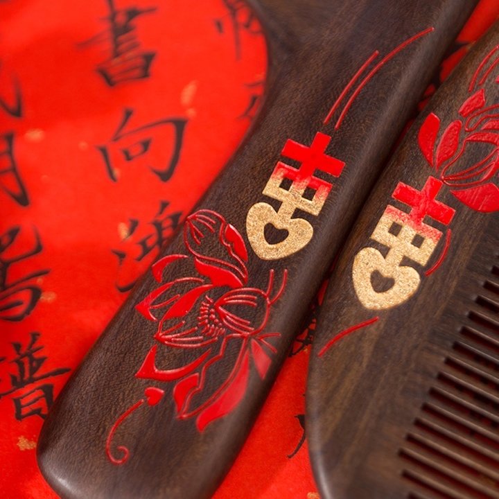 送新人一对百年好合木梳,祝他们和谐美满、白头偕老吧~