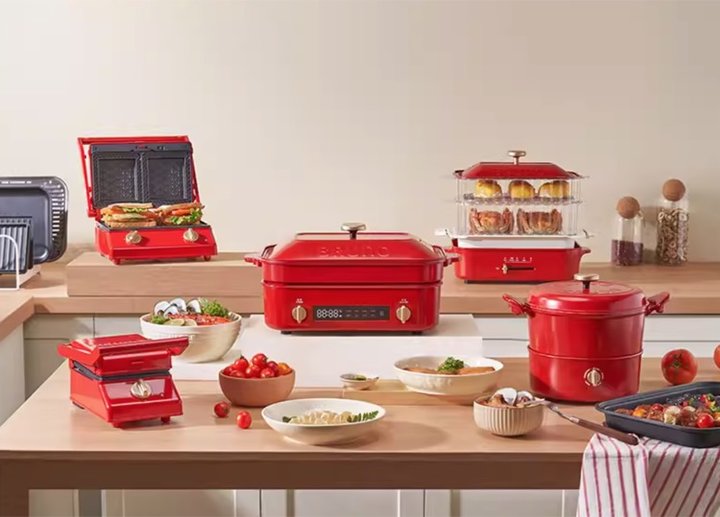 Bruno的功能料理锅颜值真的很高,非常正的红色既应景又养眼。