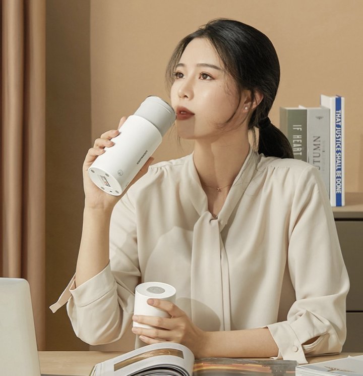 它一个便携式电热烧水杯+保温杯+调温杯,集三种功能于一体,小巧轻便易携带。