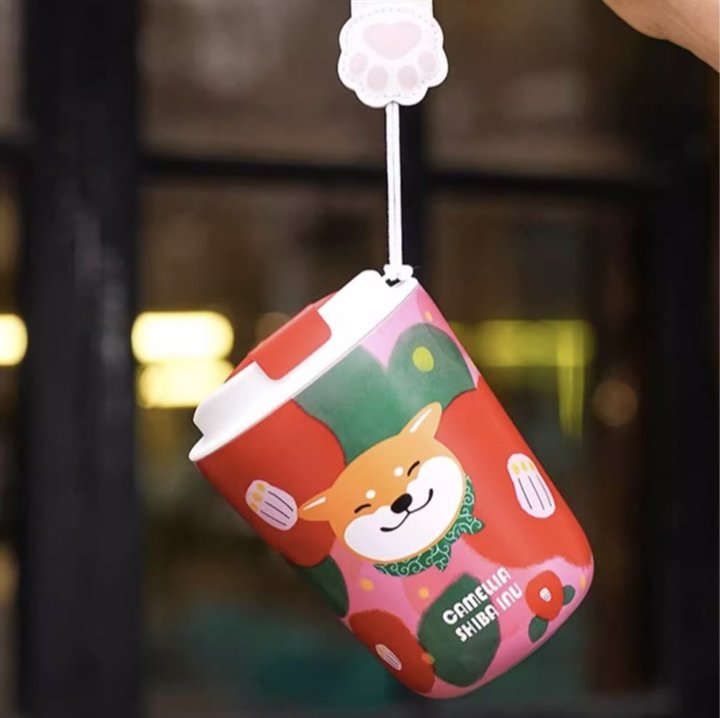 山茶花和柴犬也太配了吧!清晰有层次感的印花直接把高级感拉满。