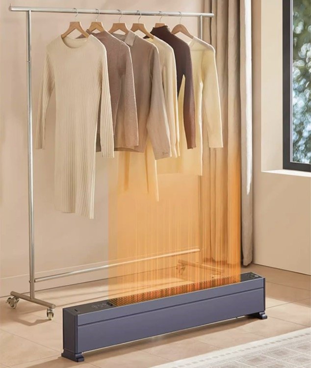 美的这款踢脚线取暖器,高颜值还好用,独特的热雾加湿功能,既能提供温暖又不会太过干燥。