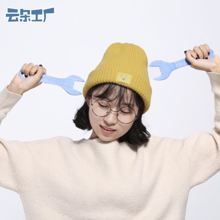 云朵工厂的这款毛线帽采用极简风设计,用简单干净的纯色系搭配可爱俏皮的时尚小黄脸方框,实属简约又可爱。