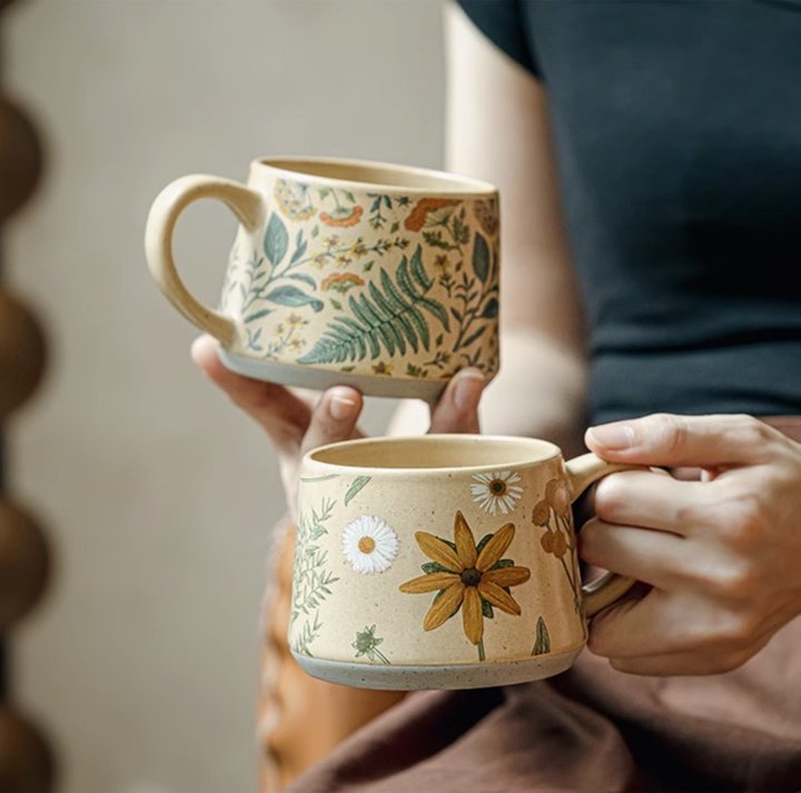 杯身花朵由手工一笔一画绘制,从花瓣的渐变到叶脉的纹理,都藏着独一无二的呼吸感。