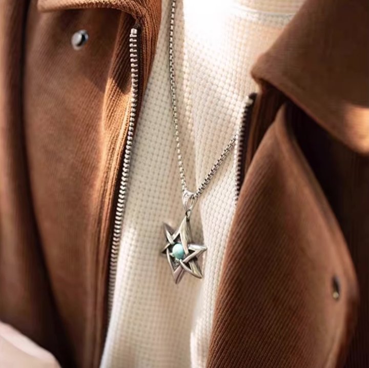 六芒星和绿松石结合,营造出一种神秘又迷人的氛围,让日常穿搭更有气质。