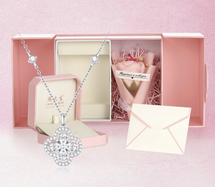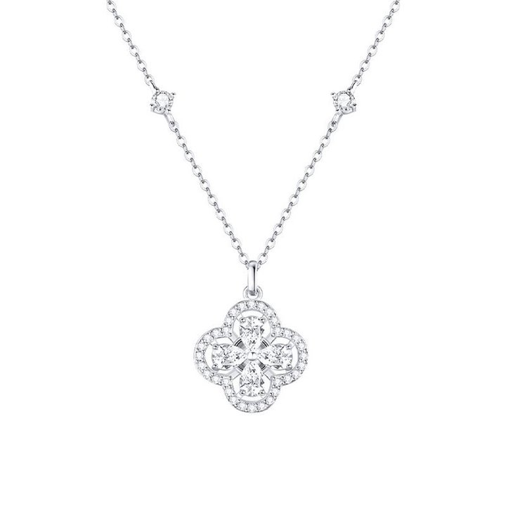 周大生银镶锆石四叶草链,时尚界的经典四叶草元素,自带幸运的美好寓意。