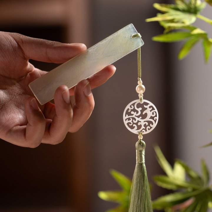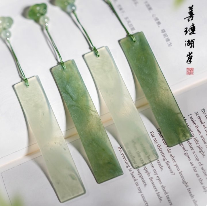 纹理和通透度各不相同的玉材,被做成了书签,像春池里的一汪水似的,各有各的清雅风韵。