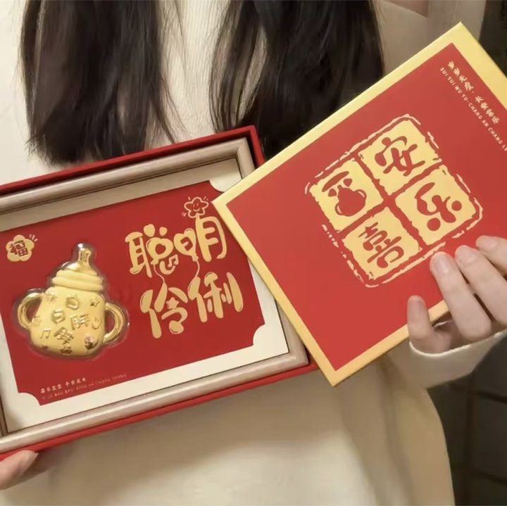 这款潮宏基黄金奶瓶礼盒,打开礼盒的瞬间就会被它拿捏!它可可爱爱,却承载了最深厚的爱与祝福。