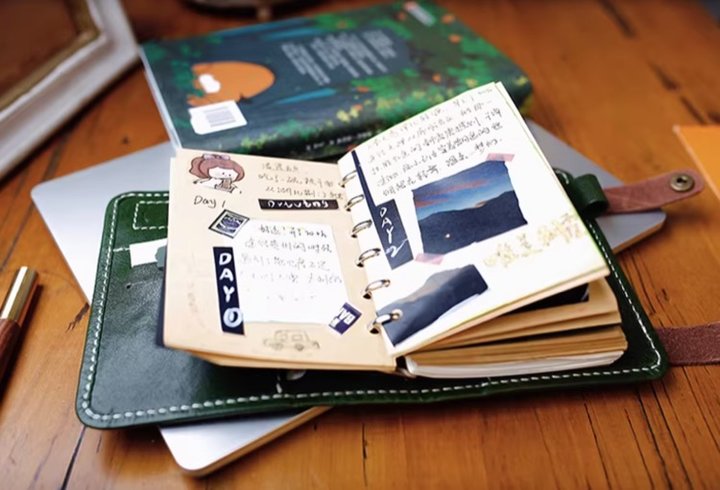 这本真皮手工手帐本,植鞣牛皮封面会随着使用留下专属的色泽和痕迹,越用越有味道。