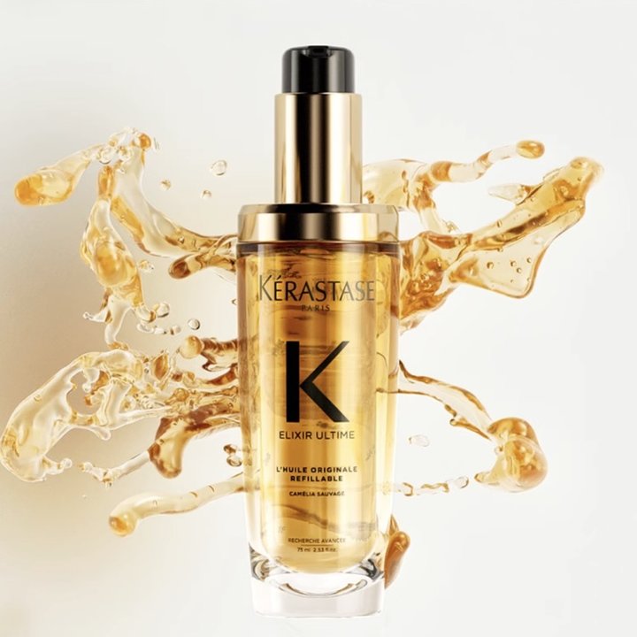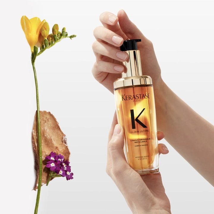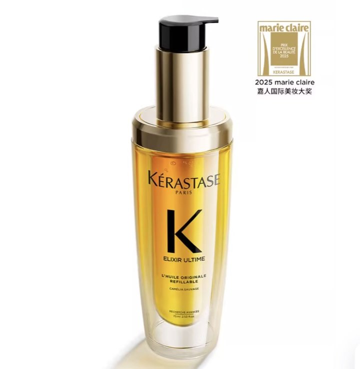 一般我会在洗完头后,将发尾吹到半干的状态,再抹上卡诗的这款精油,吸收非常快,肉眼可见的发质柔亮。