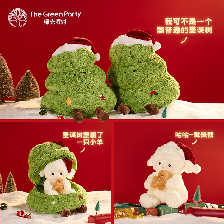 绿色圣诞树的造型,圣诞节气息狠狠拿捏住了!抱着rua超治愈~