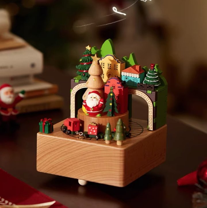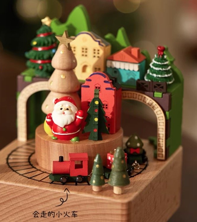 超级有氛围感的圣诞音乐盒,圣诞树🎄小火车、🎠旋转木马以及圣诞老人,编织一个浪漫童趣的童话世界。