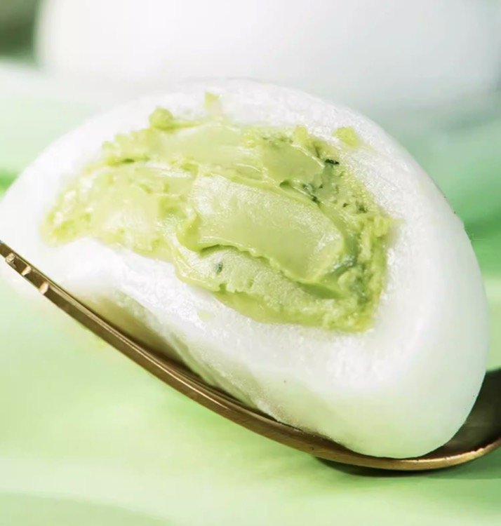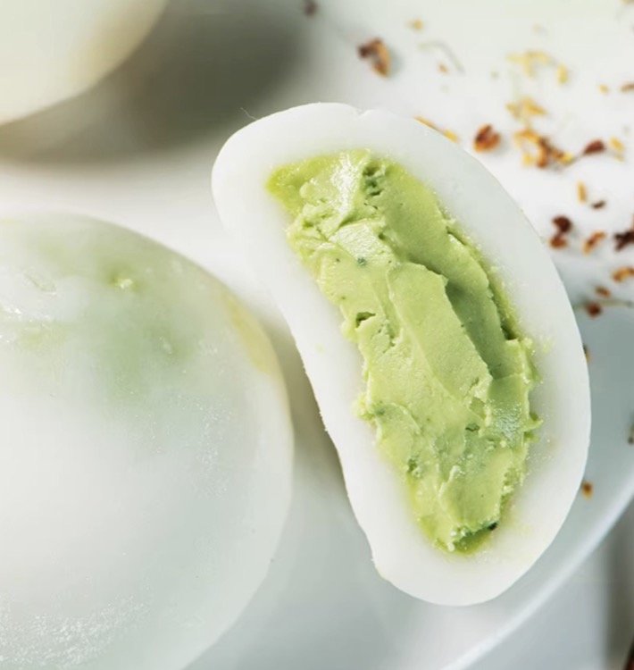 东北五常糯米混合宇治御金香抹茶分,光是外皮就让人垂涎欲滴了!