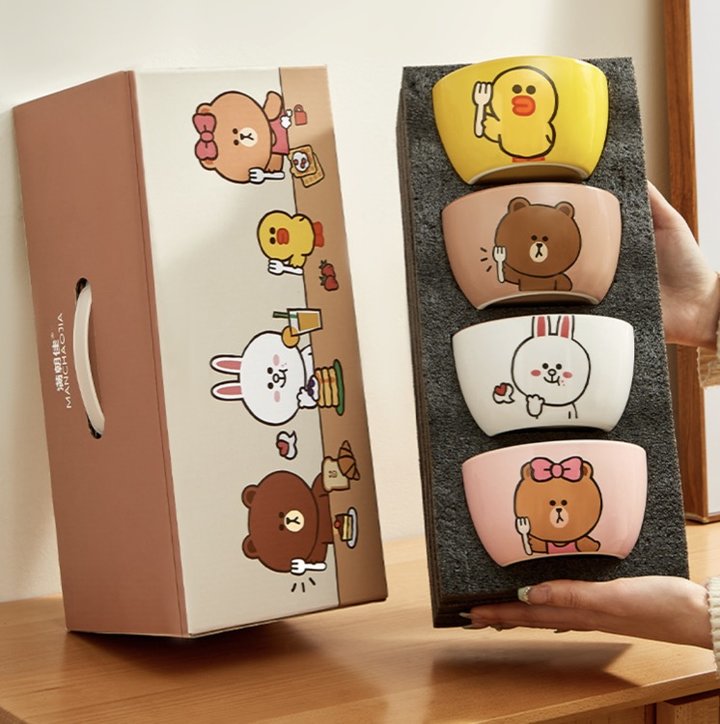 拿下一套line friends碗,一家四口整整齐齐哈哈哈太可爱了~
