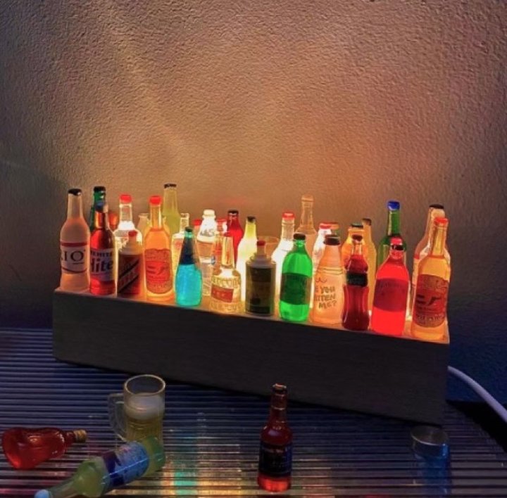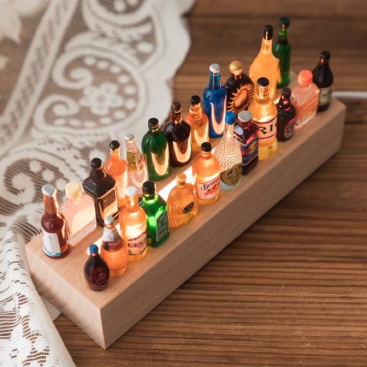 精美且用心!实木的底座,搭配非常可爱的小酒瓶,晚上用上氛围感直接拉满!