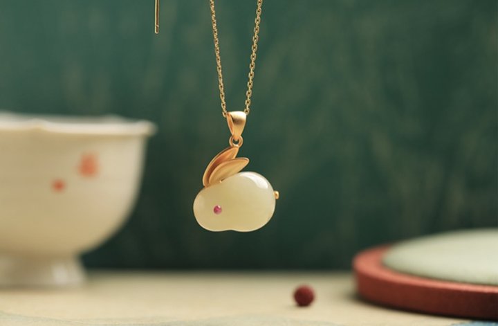 这款项链真的小巧又可爱,甄选了纯天然和田玉,玉料圆润柔和,打造了憨态可掬的小兔子造型。