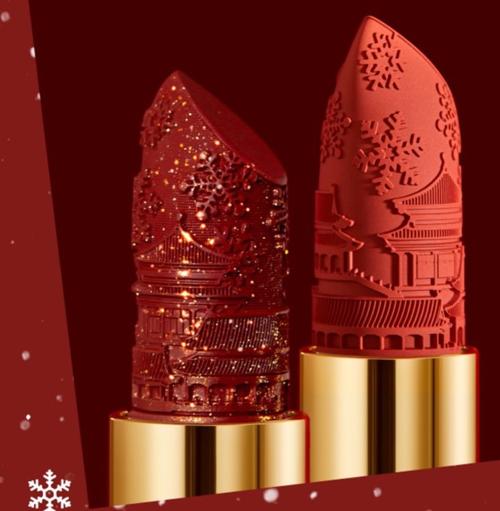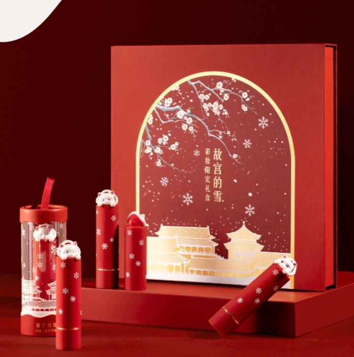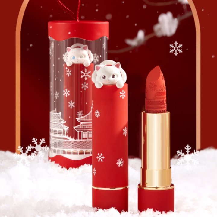 故宫雪系列浮雕口红,复现了这一幕红墙白雪,还创意的加入宫猫造型,看着可爱得让人心动。