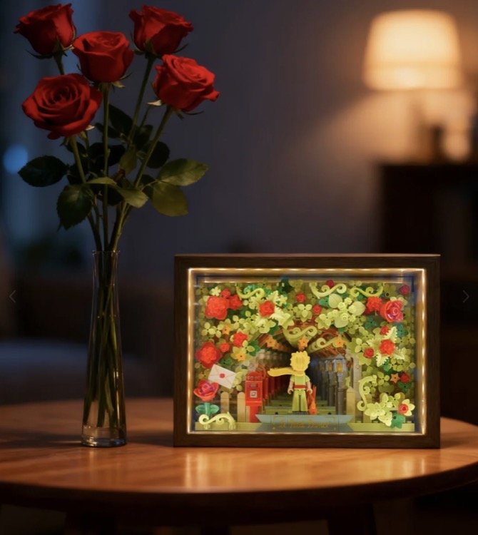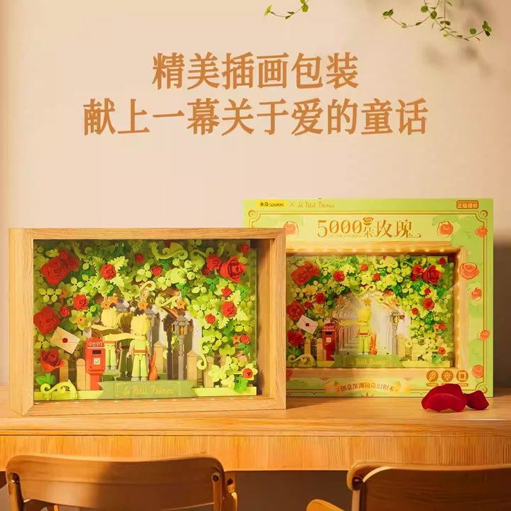 未及×小王子联名的「5000朵玫瑰」积木,把B612星球的浪漫装进了相框里。