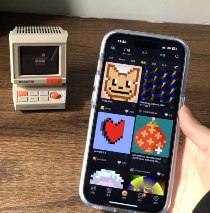 设计灵感来自上世纪老式电脑,摇杆+键盘+128*160高清像素屏——它摆在桌上,本身就是一道复古风景。