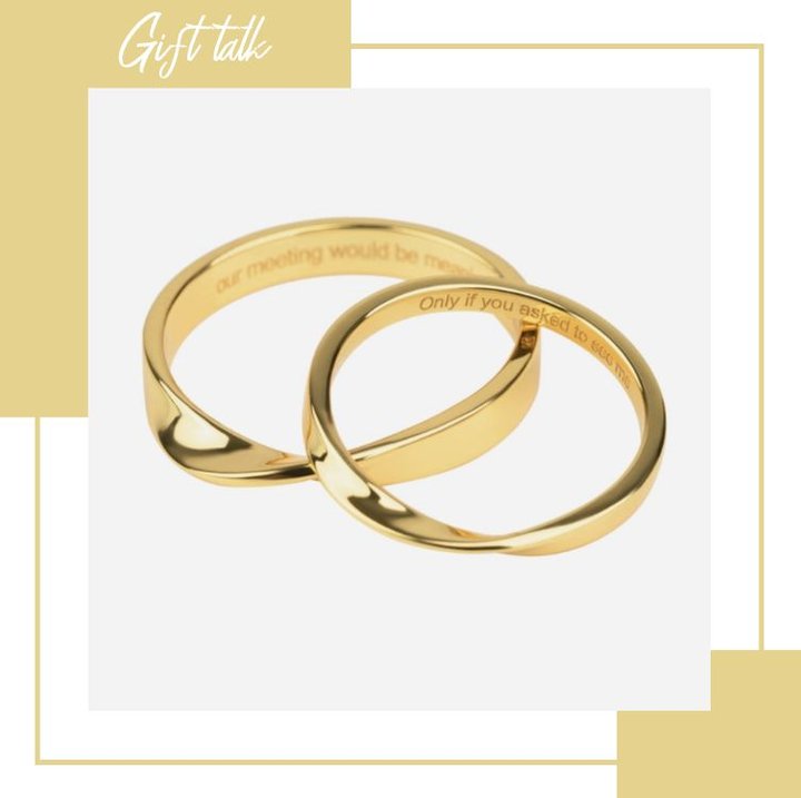 这款对戒的设计非常简约立体,灵感来源于拓扑学符号莫比乌斯环。