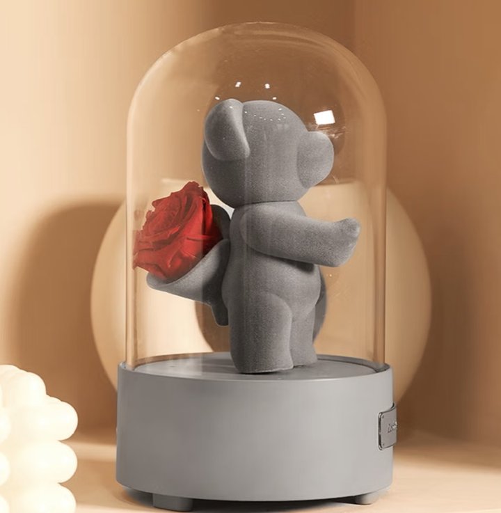 这款手捧玫瑰的比心小熊礼盒,还是个隐藏的蓝牙音响哦,一款会唱歌的永生花礼盒,甜蜜又浪漫。