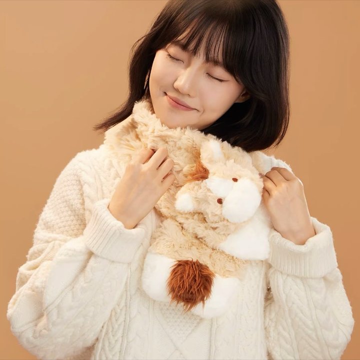 蓬松柔软的质感,90cm的长度刚好绕一圈,温暖又轻盈,完全不勒脖子。