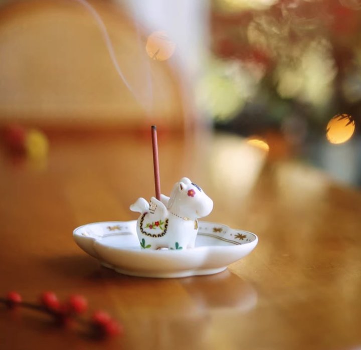 搭配特调的清甜果木金色线香,点燃后细烟袅袅,如骏马踏云,满室生香。