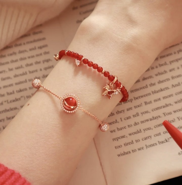 Lola Rose这款马年限定手链,深红色玉髓像把新年最正的红运凝固了,显白又提气。
