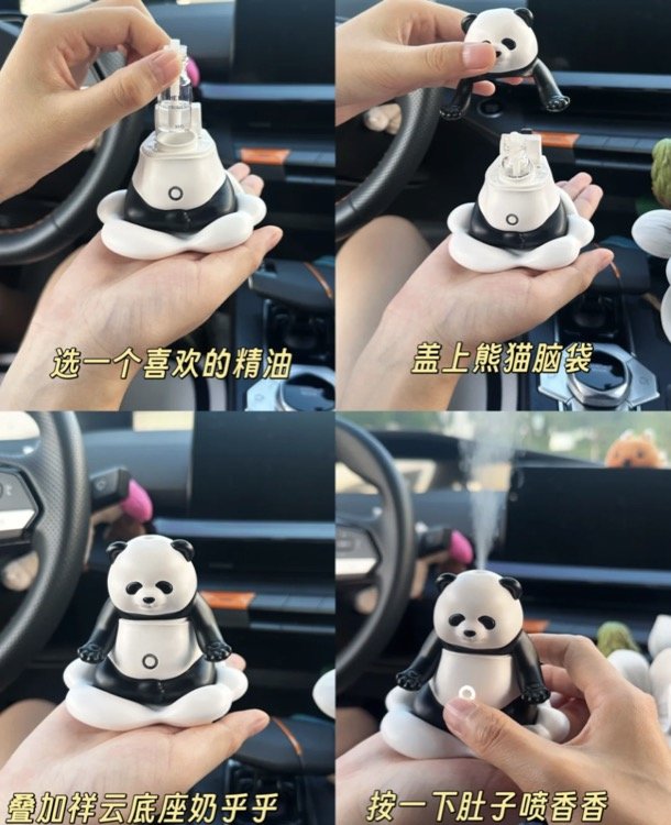 可以插在空调出风口,跟着空调冷气精准散香。有这只萌萌的熊猫陪着,闻着喜欢的香气,感觉路上的时间都变得享受了~