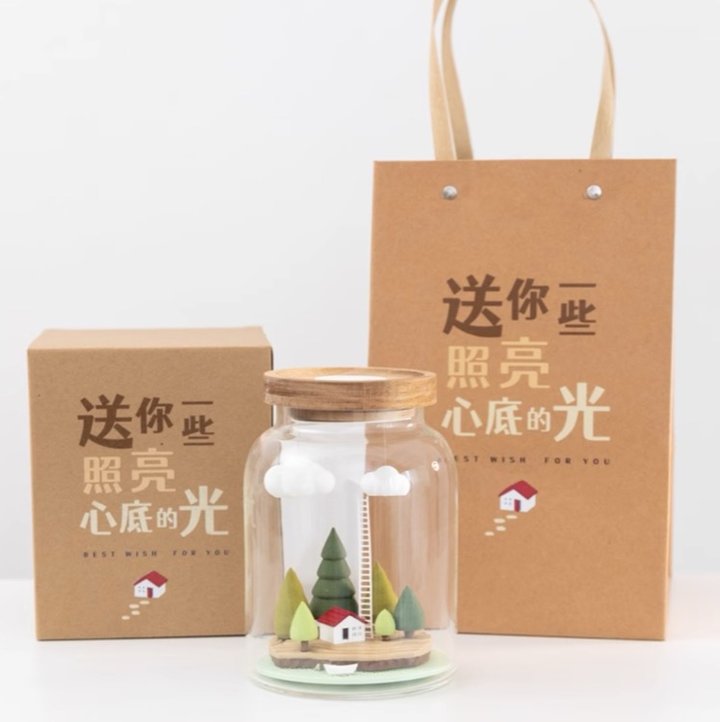 它不只是一个静态的摆件哦,轻轻一拍,就会亮起温暖的光芒,两档调光,光影摇曳间,仿佛真的能带你远离尘嚣,进入一个甜甜的梦。