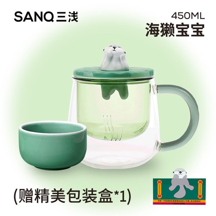 海獭和杯盖是一体成型烧制,工艺繁复,让使用体验更安心。