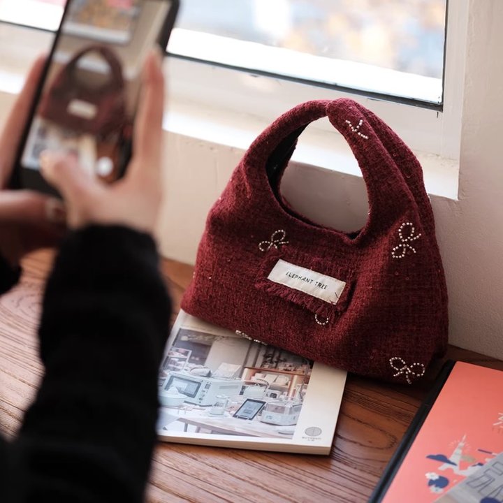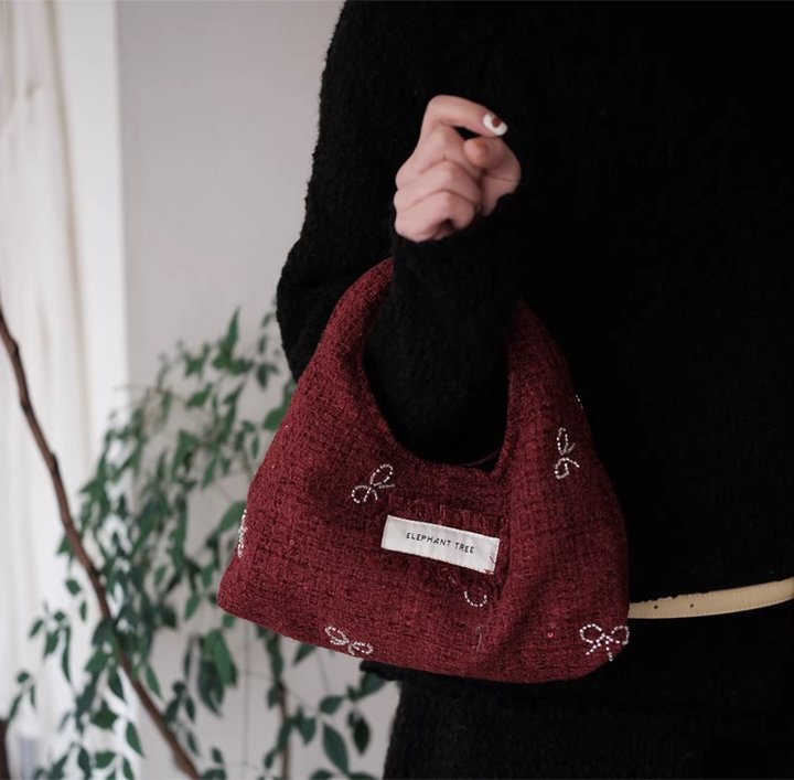点睛之笔是包身的银色珠绣蝴蝶结,在红底上闪闪发光,精致又灵动,完美平衡了休闲与贵气。