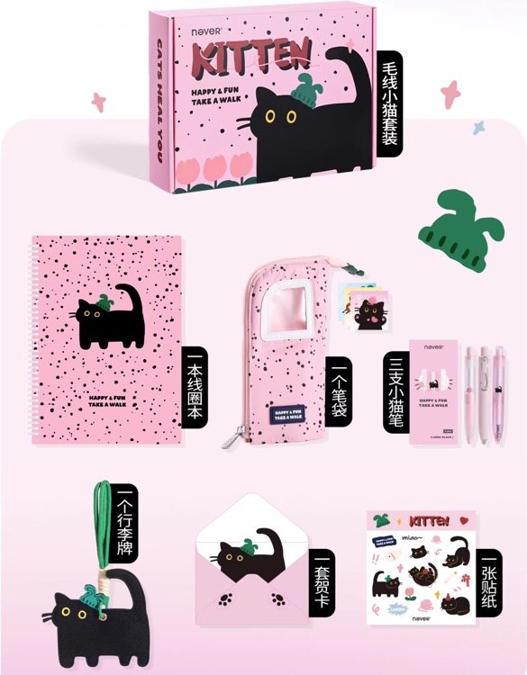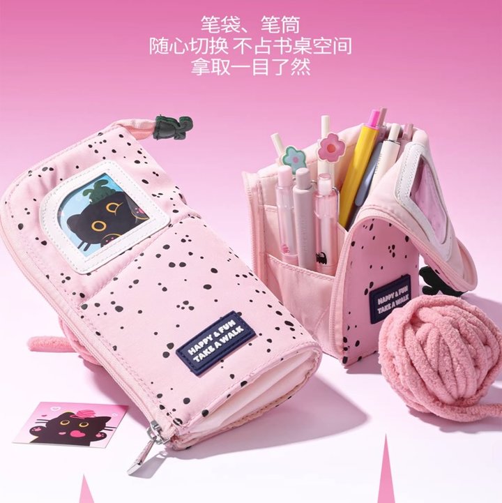 最特别的是毛线小猫站立式笔袋,一翻折秒变笔筒,放在工位或书桌上超方便。