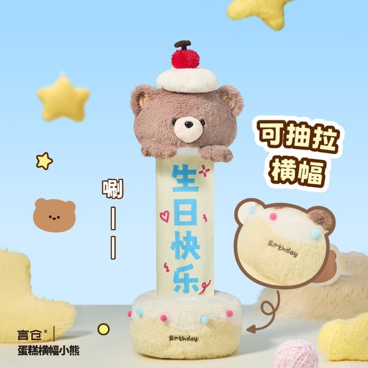 一只超可爱的布丁蛋糕熊毛绒公仔,一打开就是祝福语。