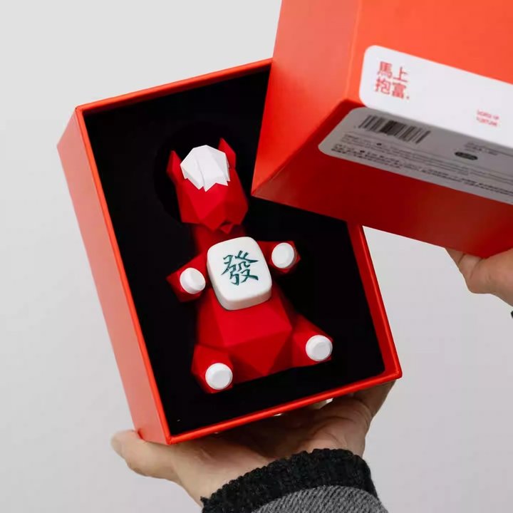 礼盒上昂首驻足的红色骏马神采飞扬,脚踏百福,彩带环绕,寓意福运齐到,喜悦吉祥。