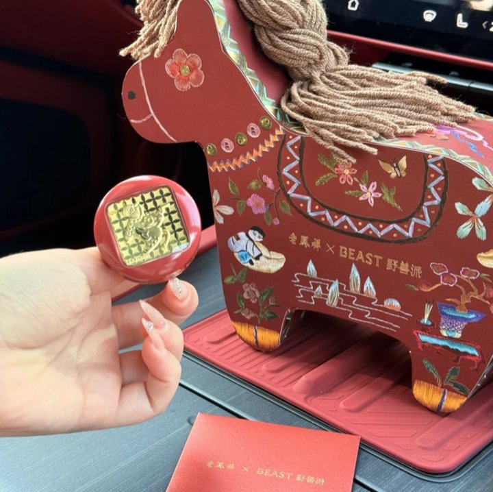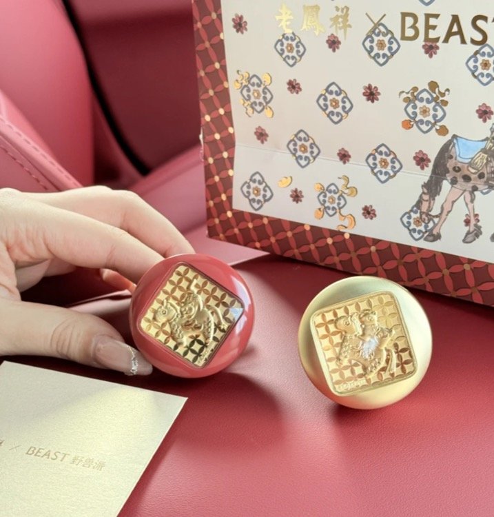 野兽派和老凤祥联名的999足金金片车载香氛系列,金光璀璨,富贵迷人。